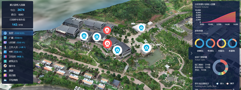 單景區(qū)采用GIS+三維空間建模,全域范圍采用GIS+2D建模,最大程度還原景區(qū)真實場景,一張圖多維度管控。